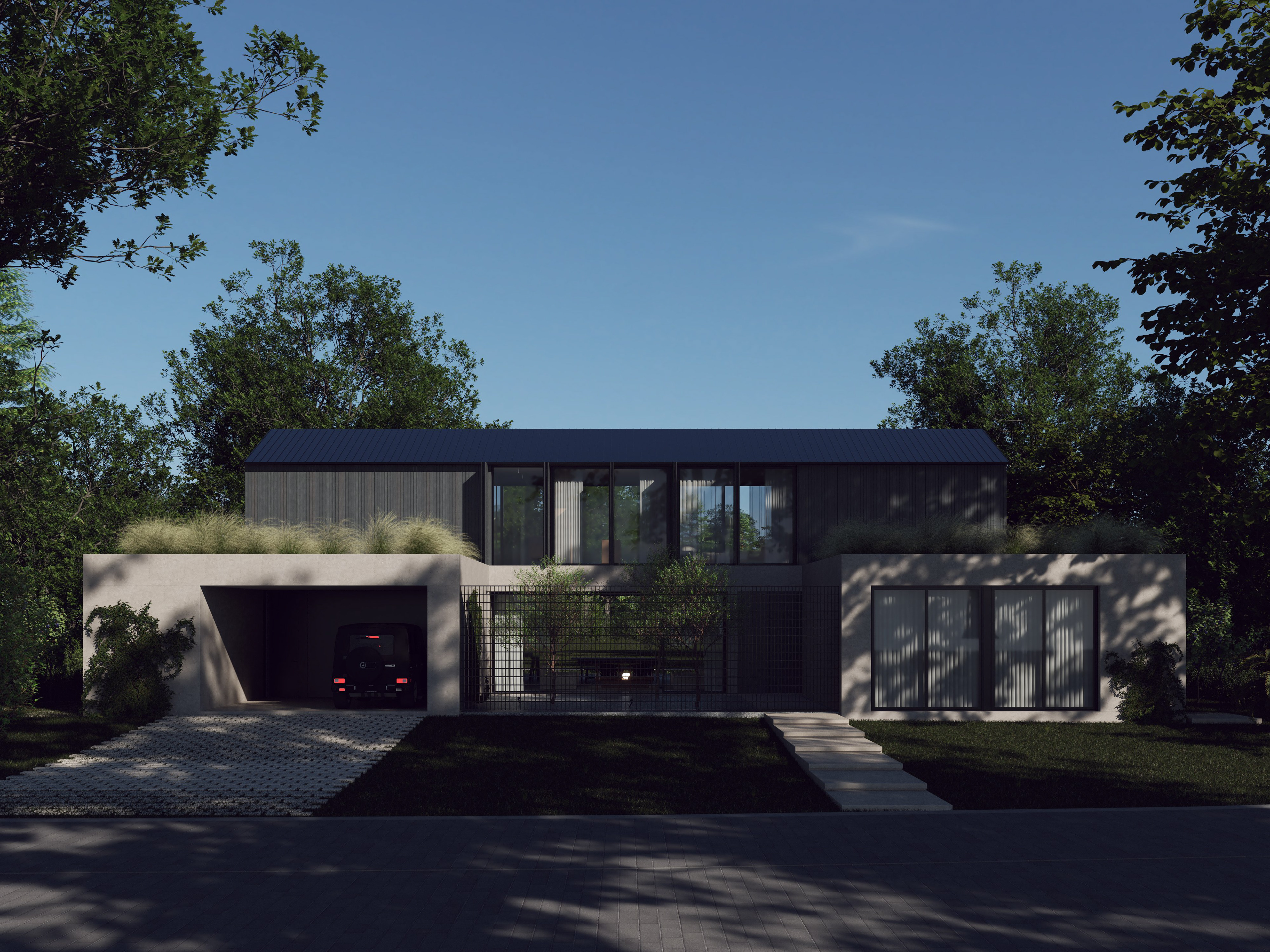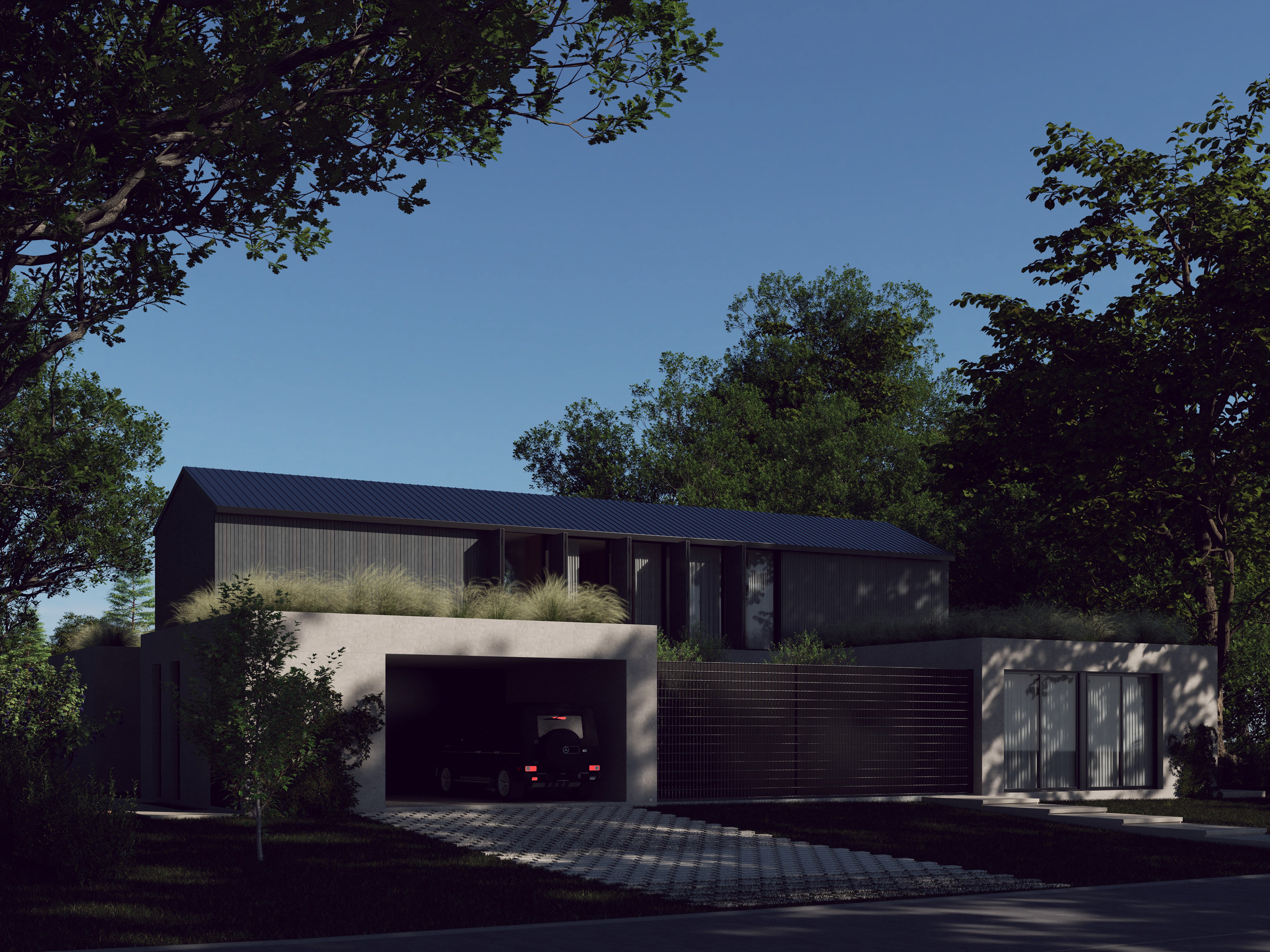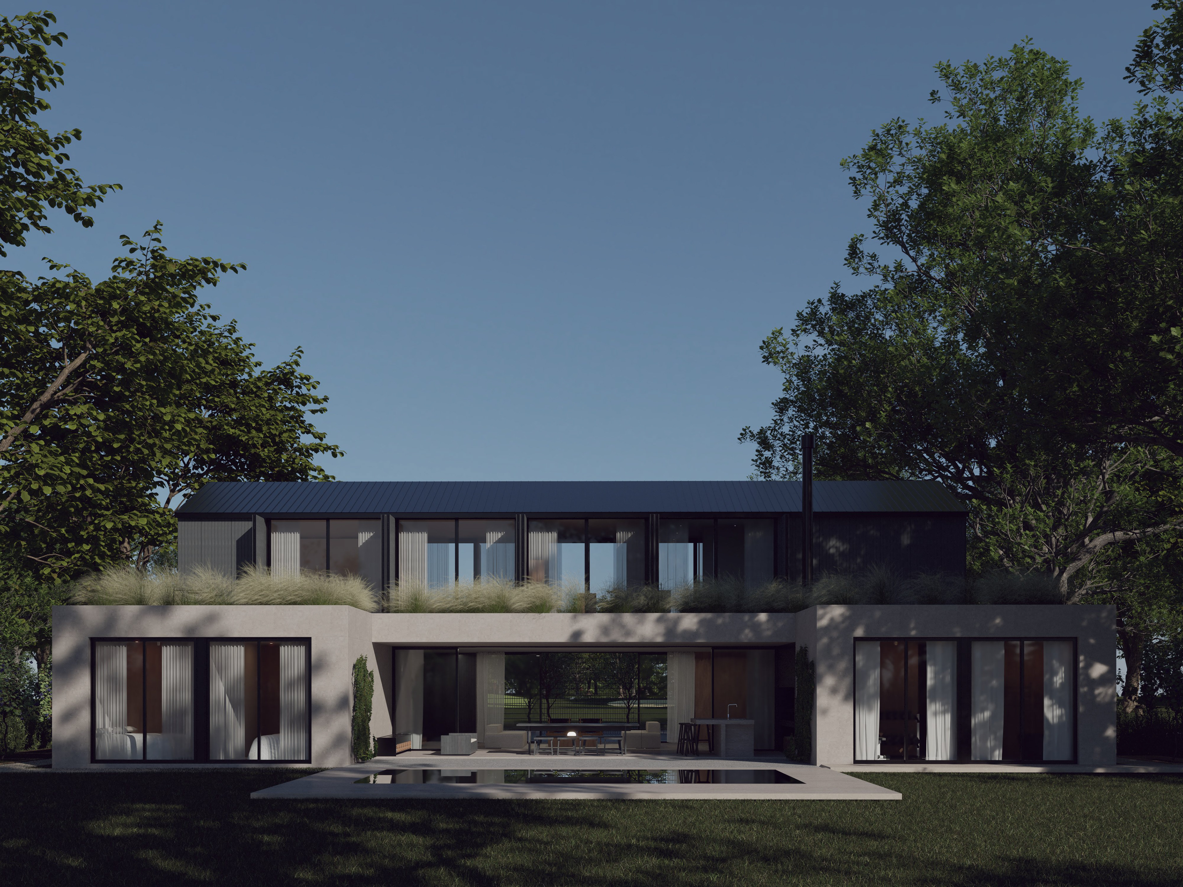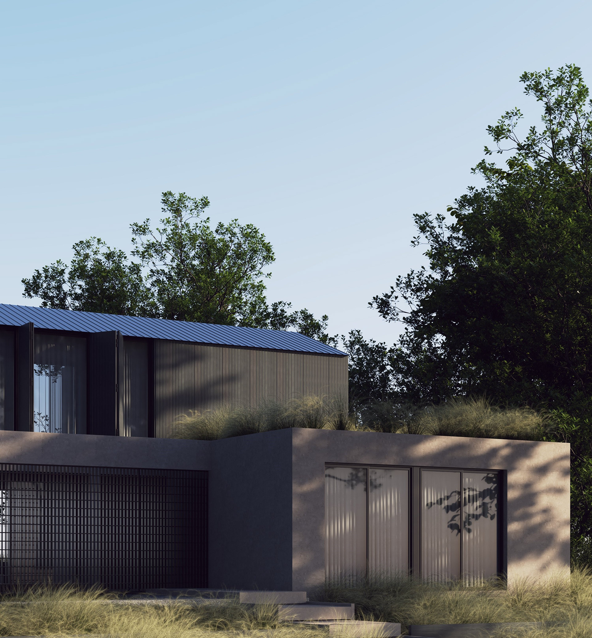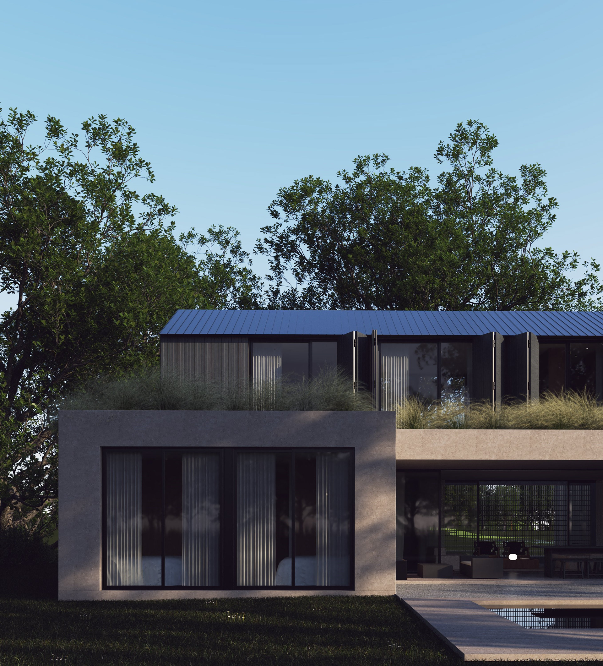 Green roofs with native, low-maintenance species help regulate temperature, reduce heat gain and integrate the architecture into its natural context. The use of native vegetation minimizes irrigation requirements and supports a resilient, low-impact landscape strategy.