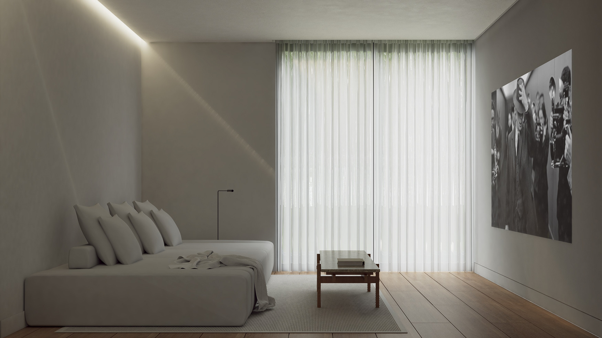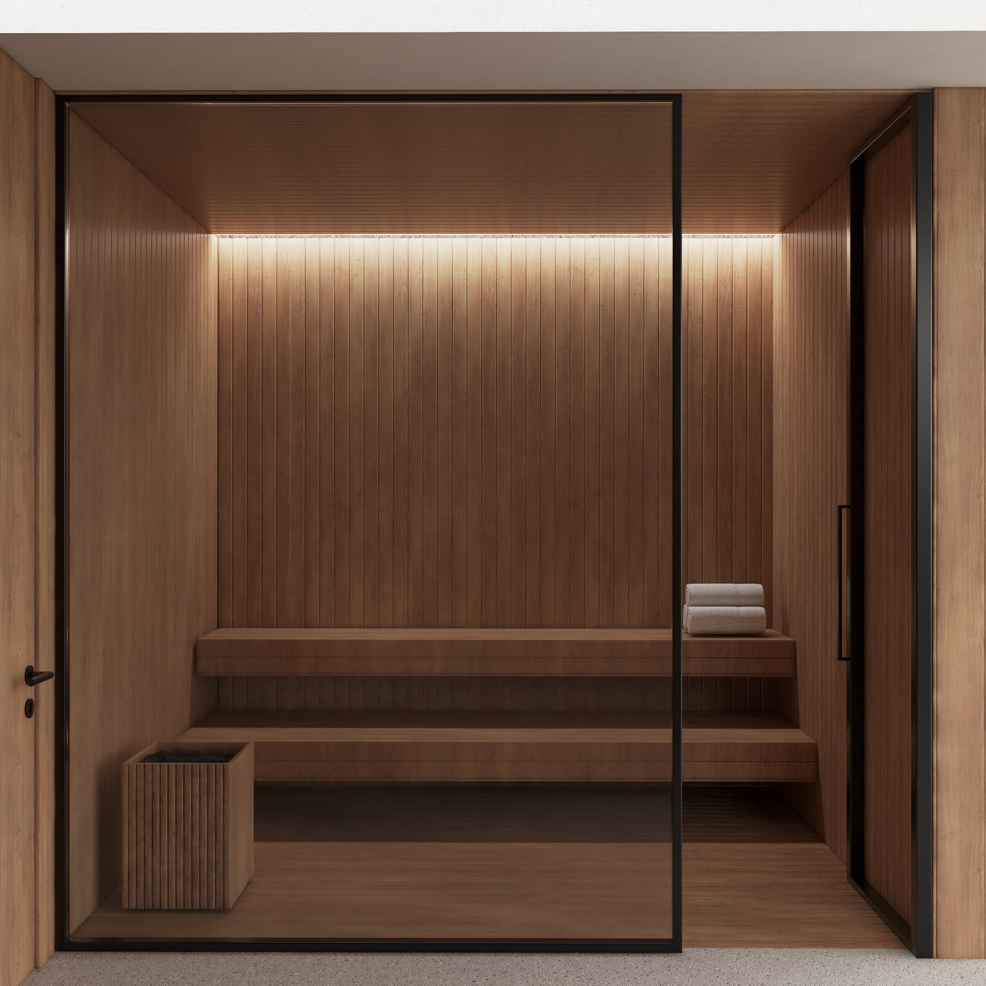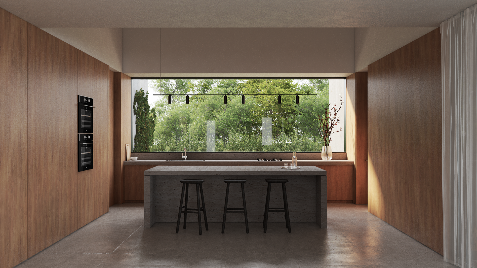 The project is structured through the contrast between exposed concrete and warm timber, establishing a dialogue between weight and lightness, permanence and warmth.
