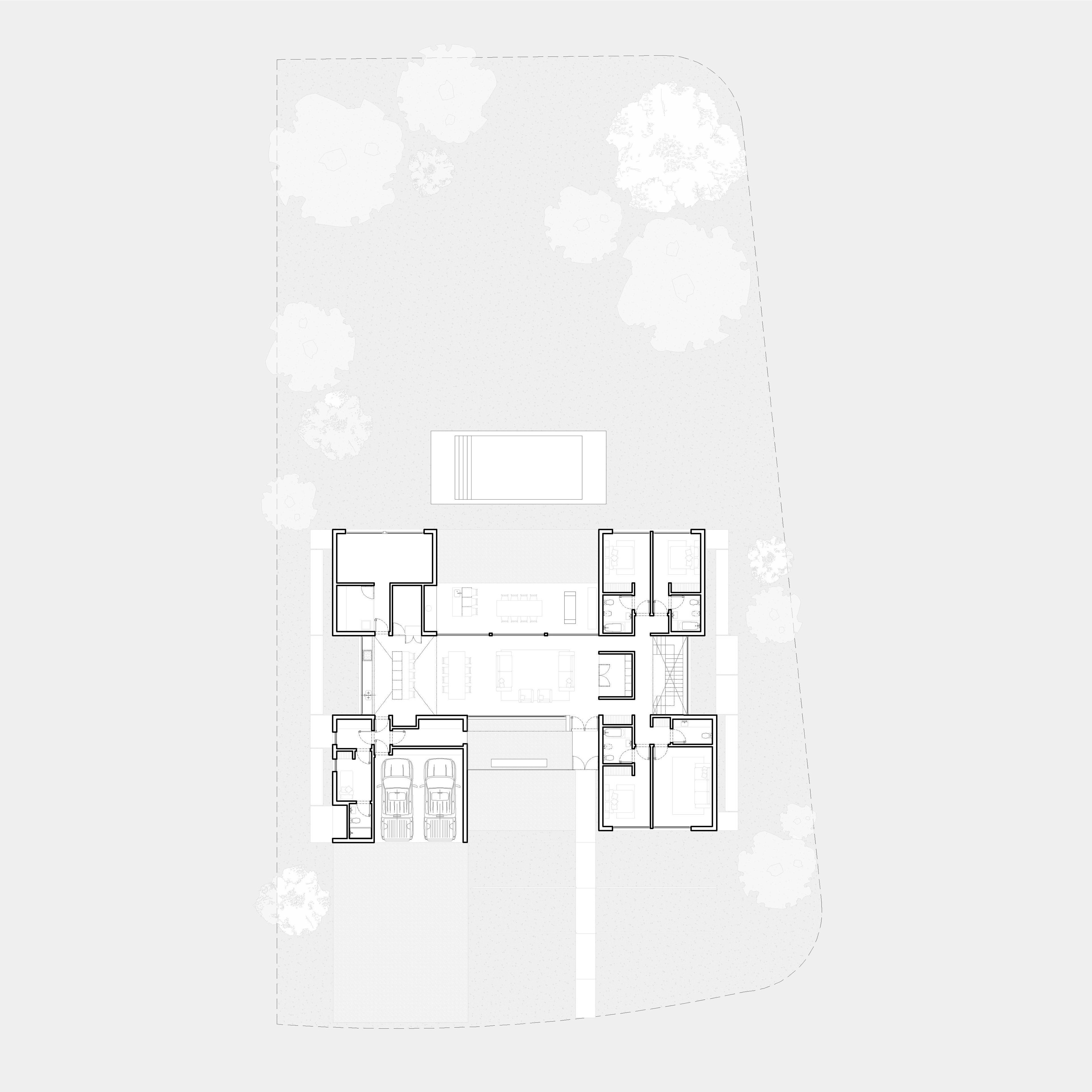 The project incorporates rainwater harvesting systems for landscape irrigation, reducing potable water consumption. Thermal insulation and cross ventilation were carefully designed to improve interior comfort and minimize the need for mechanical conditioning throughout the year.